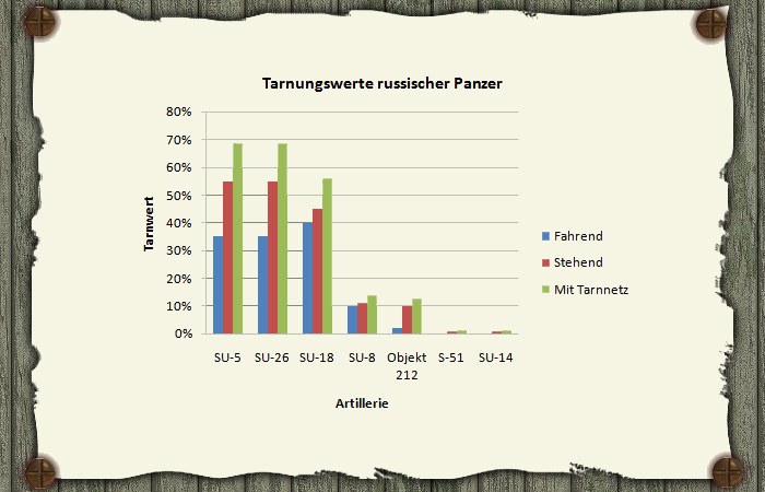 这里讲解的很矛盾…一开始说伪装网是增加伪装值到1.9,然后后面又说是增加伪装值1.25倍.所以是99%….根据后面的图表来看..应该是在坦克停车状态的伪装值百分比的基础上增加移动中的伪装值的百分比的99%