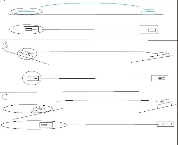 A图是完美状态下的平地攻击,火炮和被攻击目标都处于平地的情况下,那么你所要计算的就是可以简单化为一个常规抛物线.攻击的命中往往会很高.