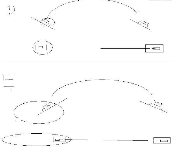 C图,被攻击目标在反斜面,火炮在正斜面,由于抛物线很平直,攻击的角度很小,射击难度很大。实在要攻击尽量以椭圆前半部分套它吧。