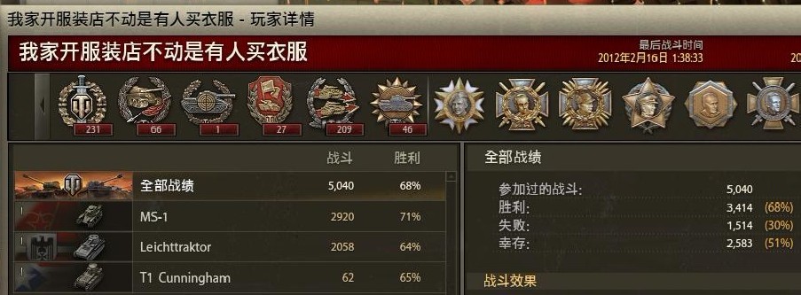 S级服装店老板!谁说卖服装就不能玩游戏了,看这位大哥的战绩,我相信没几人能超越吧!而且还都是新手坦克……