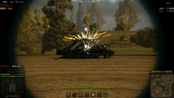 第五发,角度未变,打了车体上部,未击穿(也可能是跳弹)