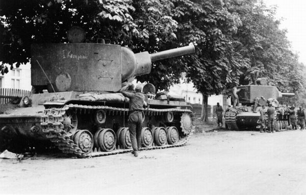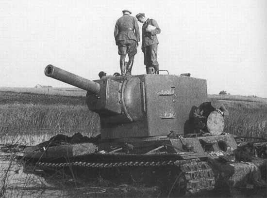 当时第6装甲师上司第41装甲军军长莱因哈特将军事后回忆道:“这此迎击战中,我军的坦克中有1/3是4号坦克,我们的坦克向步步开上街道的怪物(KV坦克)进行三方向射击,根本没有用,我们的坦克象骨牌一样被打倒!”
