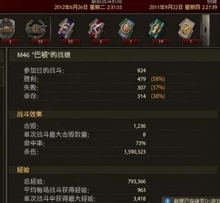 一直想写一个关于巴顿的帖子,刚好老爸在隔壁占用网络看电视,苦逼的我没炮撸只能在这里用手机热点泡论坛,发发帖子大家交流下了。不废话先上战绩。(还是老话,战绩不咋地,请各位炮友轻拍)先上数据:巴顿:(完全体)生命值:1750载重:41,07/41,2发动机功率(马力):820最大速度