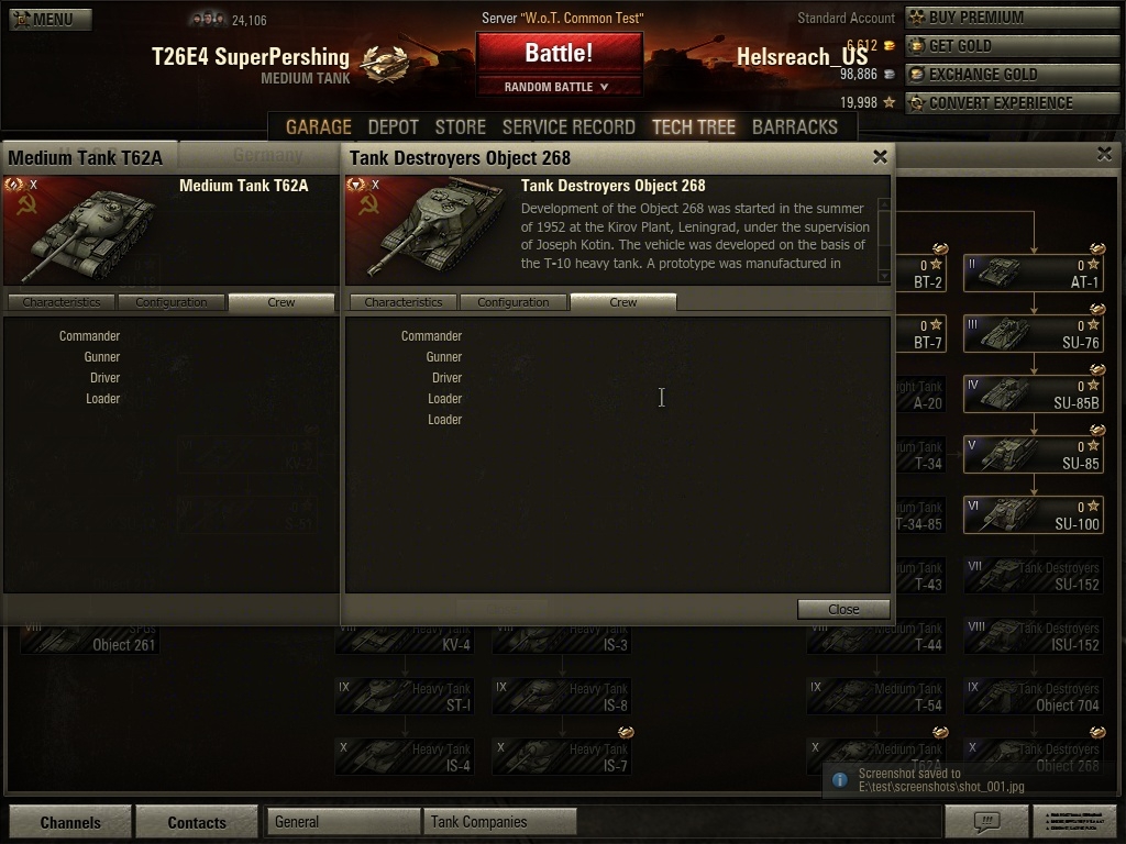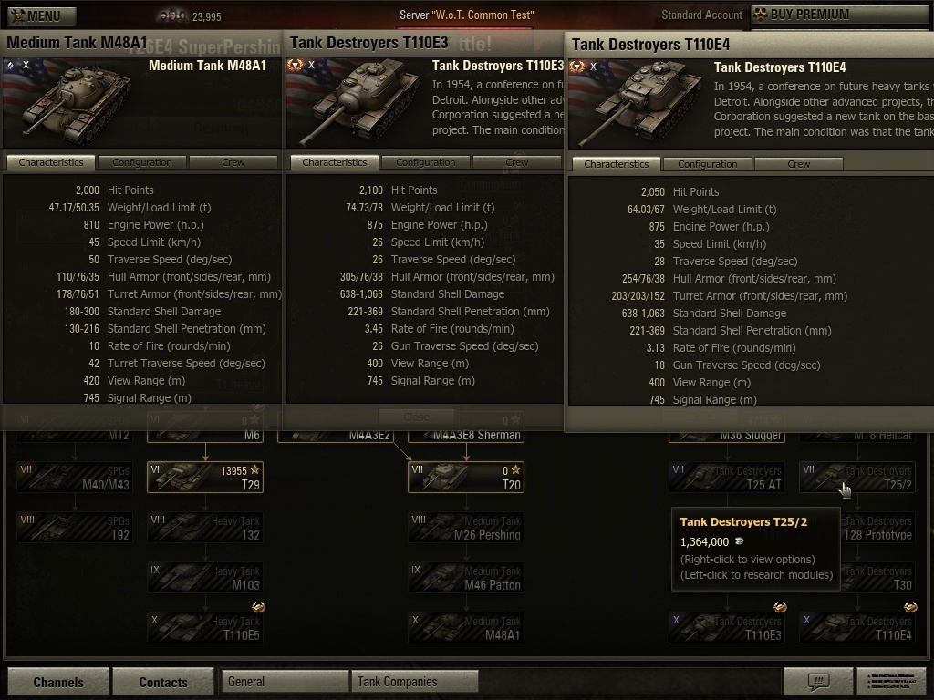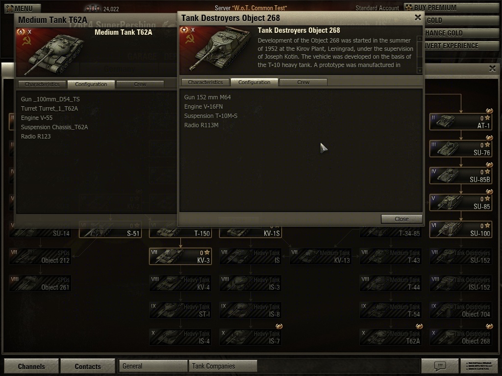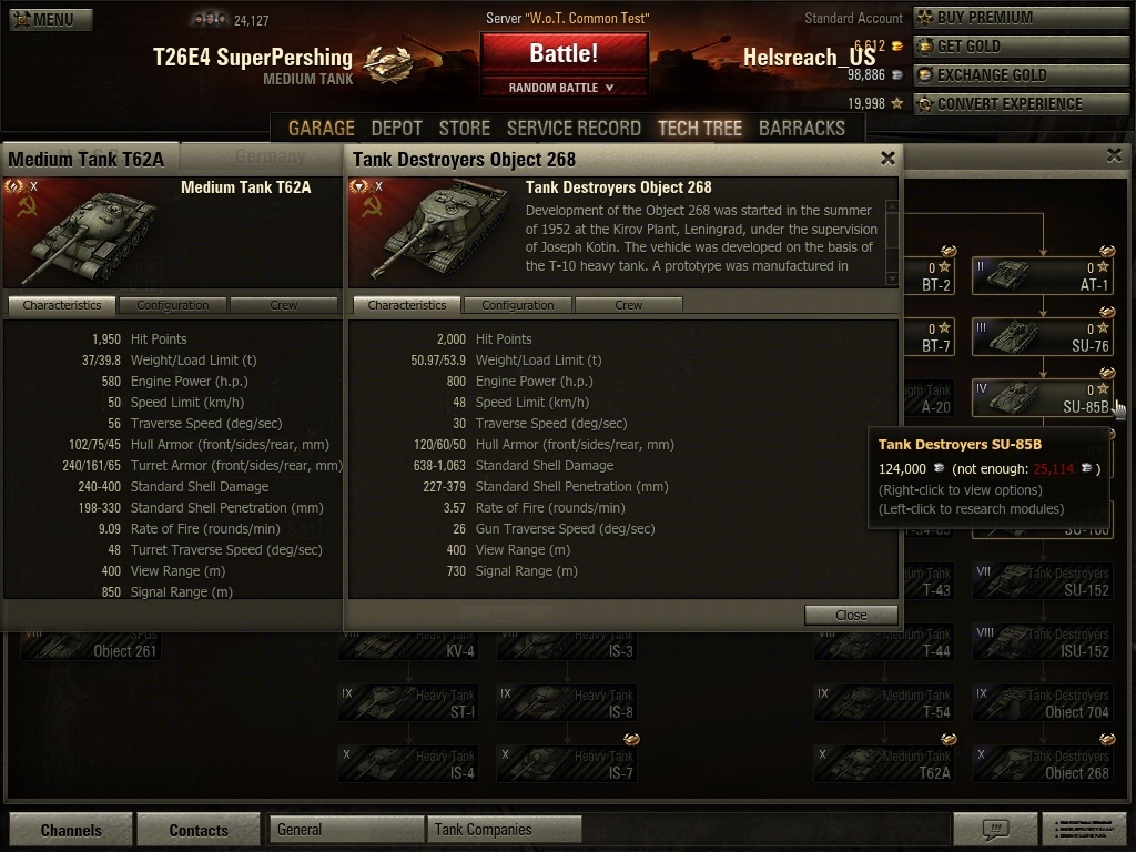 JP2requires77,500exp,sameasFerdiE50Mneeds183,010exp,costs6.1milM48A1needs160,000exp,costs6.1milT-62Aneeds200,000exp,costs6.1milObject268need