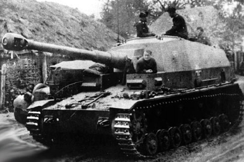“大麦克斯(Dicker Max)”,它的底盘采用改装的四号坦克A型底盘,主要武器采用克虏伯105mm K 18 L/52火炮。火炮本身由克虏伯和莱茵钢铁共同研制,在105mm sK 18 L/52重型野战炮的基础上加装了单炮口制退器。30°弹着角,这种火炮能够在2000米距离上击穿111毫米均质钢板,1000米处穿深133mm,500米处穿深149mm,100米处穿深164mm。比“虎”式重型坦克安装的88毫米L/56炮威力大很多。