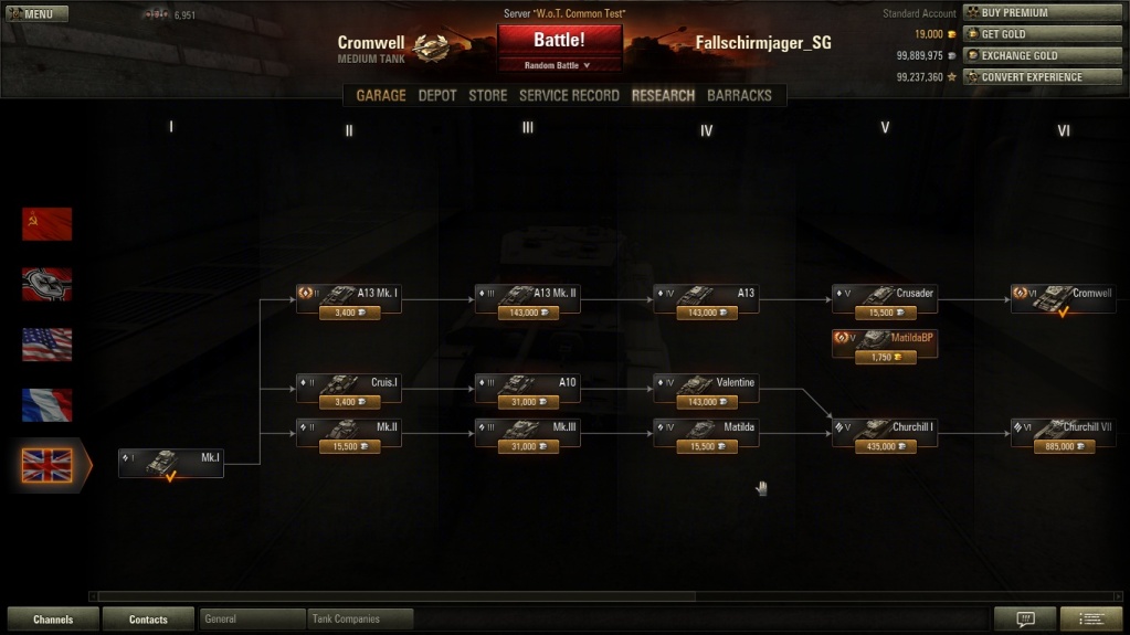 8.1-PublicTest一测英国车数据截图以下资料是英国中坦(巡洋坦克)线的数据1级拖拉机,那门6磅炮相当不错,有成为屠幼新车的趋势.2级A13MK.I顶级炮是40mm海军用的那个砰砰炮(恶评,弹夹炮)3级A13MK.II顶级炮换成了40mm博福斯(估计是弹夹炮)4级A13盟
