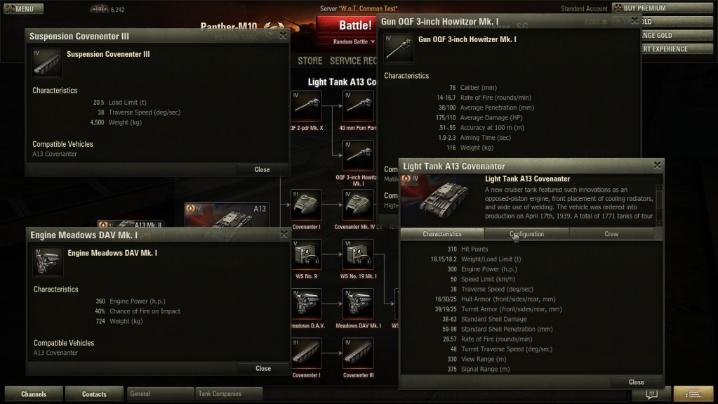 8.1-PublicTest一测英国车数据截图以下资料是英国中坦(巡洋坦克)线的数据1级拖拉机,那门6磅炮相当不错,有成为屠幼新车的趋势.2级A13MK.I顶级炮是40mm海军用的那个砰砰炮(恶评,弹夹炮)3级A13MK.II顶级炮换成了40mm博福斯(估计是弹夹炮)4级A13盟