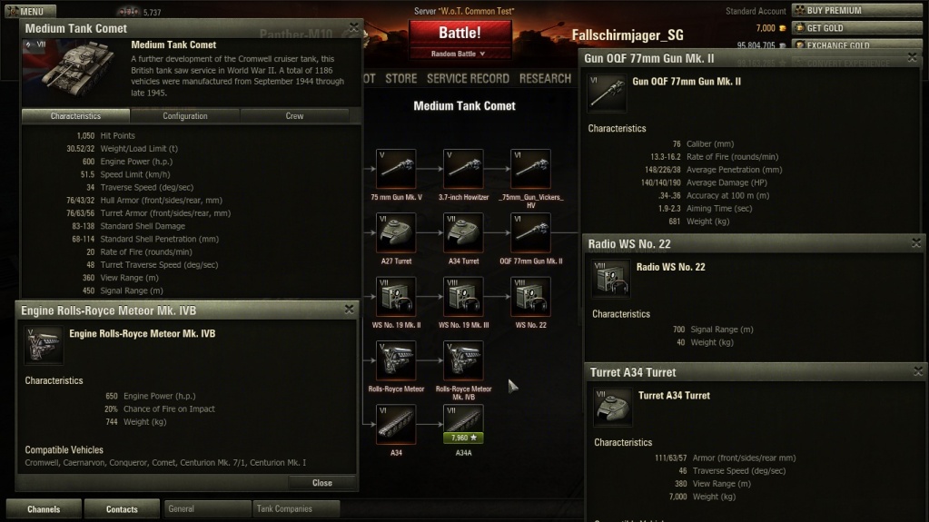 7级A34彗星巡洋坦克 最高速度下降到51,高度比克伦威尔低,但是主炮比较水,估计会苦逼