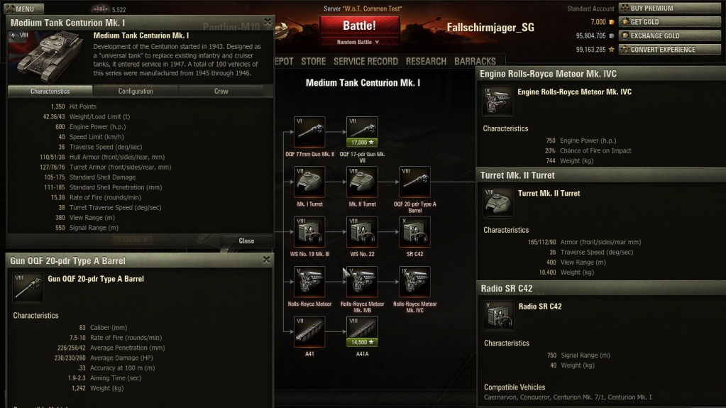 8级百夫长MkI 拥有一门穿深不错的主炮和悲剧的最高速度