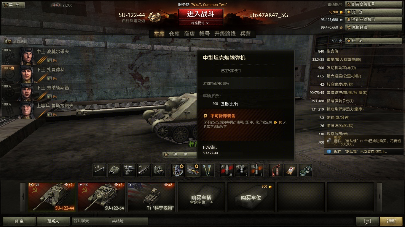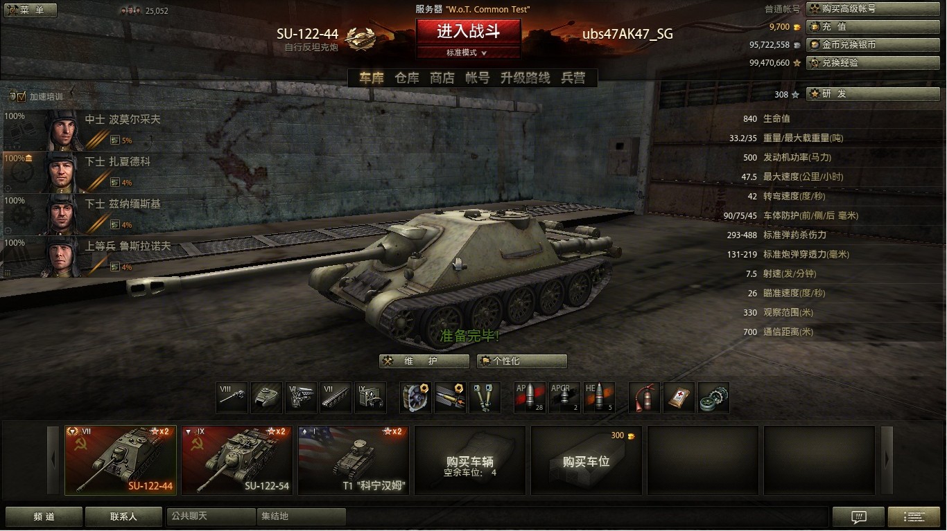 坦克世界8.1新7级金币车SU-122-44测评火力:有不输于同级SU-152的D-25122mm炮(精度、缩圈、射速。3大性能别无二致)3星机动:500马力驱动32.5吨的车体(作为2线输出的TD机动绝对够用)4星防护:90mm60°倾斜装甲(放在7级里面简直就是逆天)5星射界