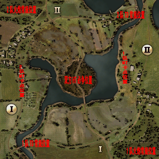 2队MT卡点在中心岛左侧靠近敌人基地附近,此地区建筑众多树丛较多左前方有一小斜坡有一定的防御火炮能力,但比1队位置的防御效果要差,同样可以支援到中心岛的左侧地区。