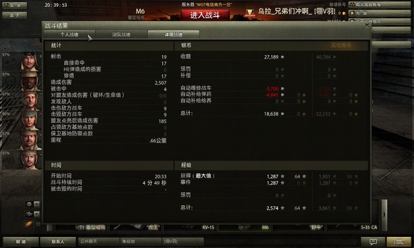 原本我看这门炮需要10000+的经验就打算不升了,直接攒攒出T29,但是M1A2的蛋疼穿深经常**各种打不穿,一咬牙换了这门炮之后击毁率立马飙升,场均能有3~4个击毁,场均输出也有1500+。