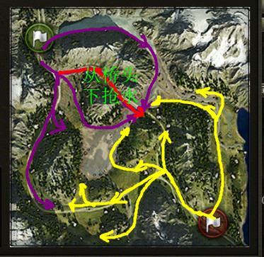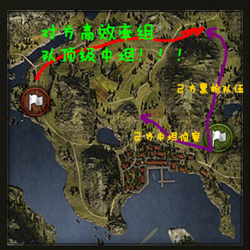 如果发现对面有3个1000+效率组队的顶级中坦,出生在地图右下的可要喜欢爬山的可要注意了,敌方很可能以最快速度已经埋伏在了那里,上去一个杀一个。应对的策略是上山的结伴上山,同时己方侦察车一定要做好侦察工作,不然A8处可能会崩盘。