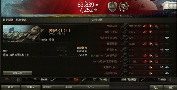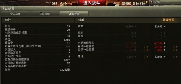 刚玩了一局,感叹下,T110E5依然是现在游戏里最好的**。
