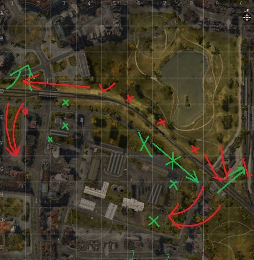 接下啦的讨论将不包括火炮,因为LZ的火炮渣走位,从来不知道这张地图该去那里,不过从我在这张地图被炸出的翔来看,基本上火炮能够覆盖铁路全线……