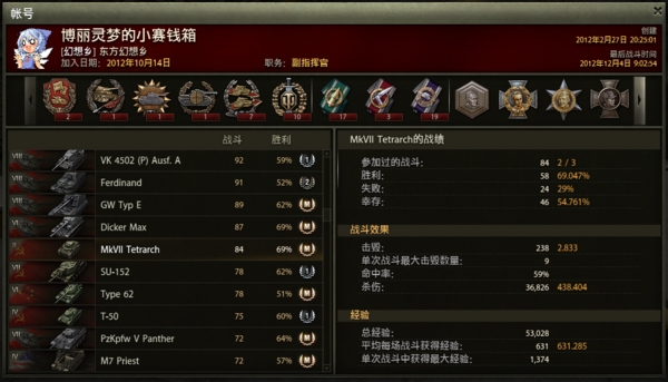 第一张有图有jb所有车亲自开过,胜率效率个人感觉还可以说得过去。以下介绍的所有金币/特种车都是自己用过的。个人感受。有相反意见可以提狮子第一辆8级金币车,在官网商城和kv5打包买的。目的是缓解虎王出E75的经济压力。也是我场次最高的车→_→(没过千你说个蛋..→_→)优点:炮精度