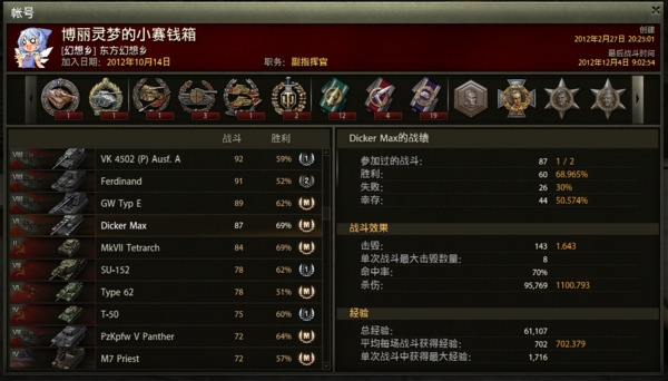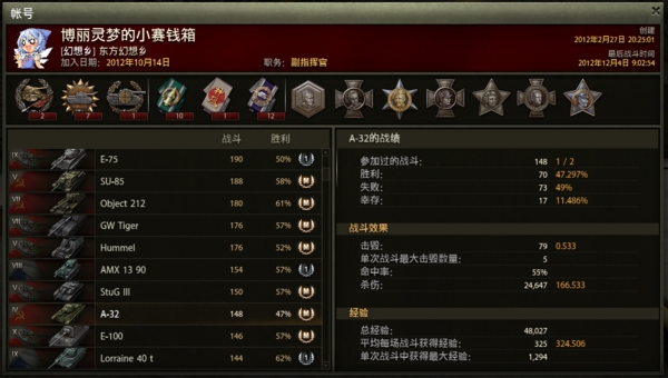一开始是在同学的带动下玩WoT的。初期没v(一直到虎王才开始充v,没经验加成过白板太痛苦了..那时候可不像现在天天双倍五倍什么的),买四号的钱都没有。