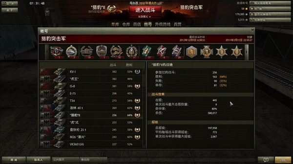 以下是本人的猎豹二以及战绩,我不是高玩,也不是高富帅,最近不怎么充v,完全野队,和基友组队也就10+场吧。因为本屌丝先走的是德系中坦线,而且听说南哥白板被各种超车,所以本人就出了猎豹二,白班的时候感觉非常顺手,可能是用惯德系中坦的原因。后来研发出了128炮,完全体以后,我就爱上了