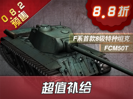 注:特惠商城礼包中的FCM50T会在0.8.2版本上线当日发放到玩家帐号内,其他补给与坦克不受此影响。FCM50T坦克数据介绍为俄服测试结果,坦克正式数据以0.8.2版本在国服上线后为准。