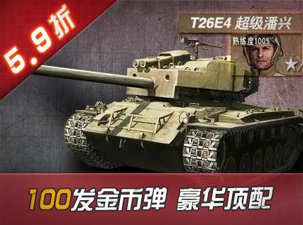 | 重装步兵坚守阵地豪华包 | T26E4超级潘兴 | 100%熟练度车组乘员 | 金币弹100发 | 5.9折 | 1000 | 3700点券 |