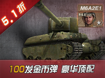 | 孤胆勇士奋战巴斯通豪华包 | M6A2E1 | 100%车组乘员熟练度 | 金币弹100发 | 5.1折 | 500 | 5587点券 |