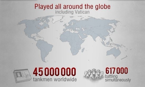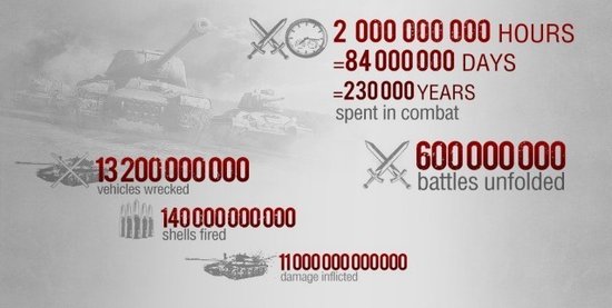从官方公开了该作数据图表中我们发现,本游戏共有617000名玩家同时在线,游戏总时间超过23万年,游戏发售至今共发生了6亿次战斗,摧毁了132亿辆坦克,游戏注册用户数突破4500万。