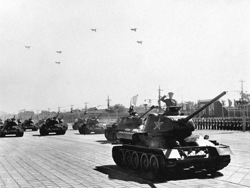 1953年国庆阅兵式上的SU-76装甲兵成立以后,开始着手制订装甲兵的发展计划。1950年10月,装甲兵提出了三年发展规划。计划到1954年底,通过购买引进的手段,建立起一直拥有1000辆苏式坦克的现代化装甲部队,并且逐步淘汰日美旧式坦克。1950年底中苏达成协议,中国从苏联成批