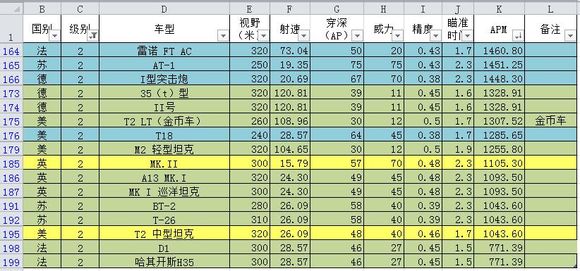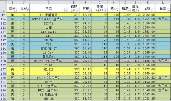 献给坦克世界新手老手的好东西,看看哪些车应该砍,表中HT为灰色 TD为蓝色 MT为黄色 LT为绿色。