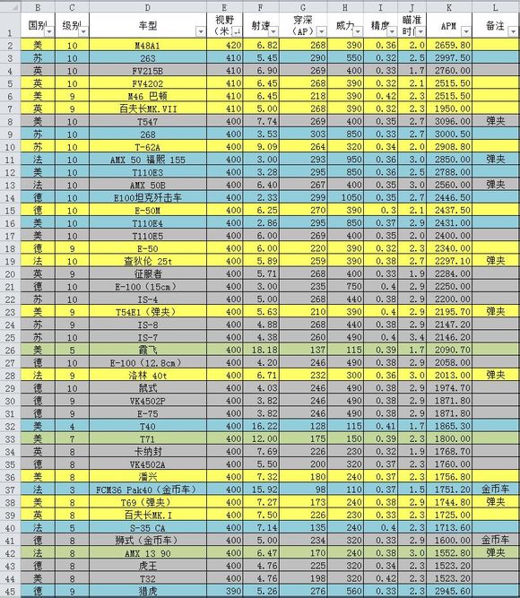 献给坦克世界新手老手的好东西,看看哪些车应该砍,表中HT为灰色TD为蓝色MT为黄色LT为绿色。其中可能有些计算错误,大家凑合着看看吧.2级车DPM排行3级车DPM排行4级车DPM排行5级车DPM排行6级车DPM排行7级车DPM排行9级车DPM排行10级车DPM排行DPM总排行(无