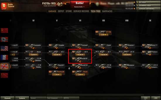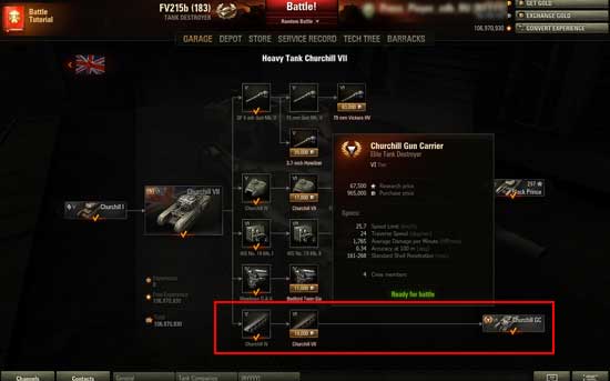 小编先将研发线路图发送给广大玩家一探究竟,从图中不难看出,“丘吉尔”自行反坦克炮只需要玩家朋友研发出“丘吉尔”VII型的悬挂装置即可。从研发完“丘吉尔”VII的悬挂装置后,玩家还需要积累67500的经验才能点亮“丘吉尔”自行反坦克炮。