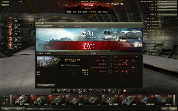 因为不会做录像,所以只好截个图,然后手动说明了,这局开的美国的6级轻坦T21,跟同级的LT非常的没有优势,没有12T弹夹,没有59-16的隐蔽,车体大,速度也不快,进了10级房可以说是酱油般的存在。