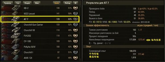 今天想讲的东西蛮重要的,希望大家奔走相告,为什么呢,先看8.4外服的统计数据,注意胜率栏:57.68%!!这车平均胜率直接让我们无法直视啊!!爆一下lz这车的数据lz此车单野毕业,已卖,买了8级的AT15,向我的183又近了一步~~(吐槽一下,这车lz竟然连1级都拿不到!坑爹啊,