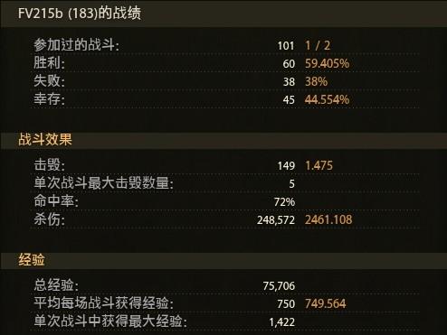 以上是100场的数据,比较水场均才2461,还不如我的福熙155.