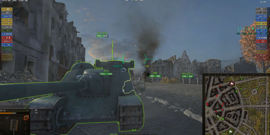 现在新手太多,想当然的人太多,这种人想当然的去打头顶的观察孔,但是观察孔装甲是112,加上会玩的AT8会在你瞄准的时候扭动身子,顺便前后移动,所以观察孔击穿概率并不是非常大。