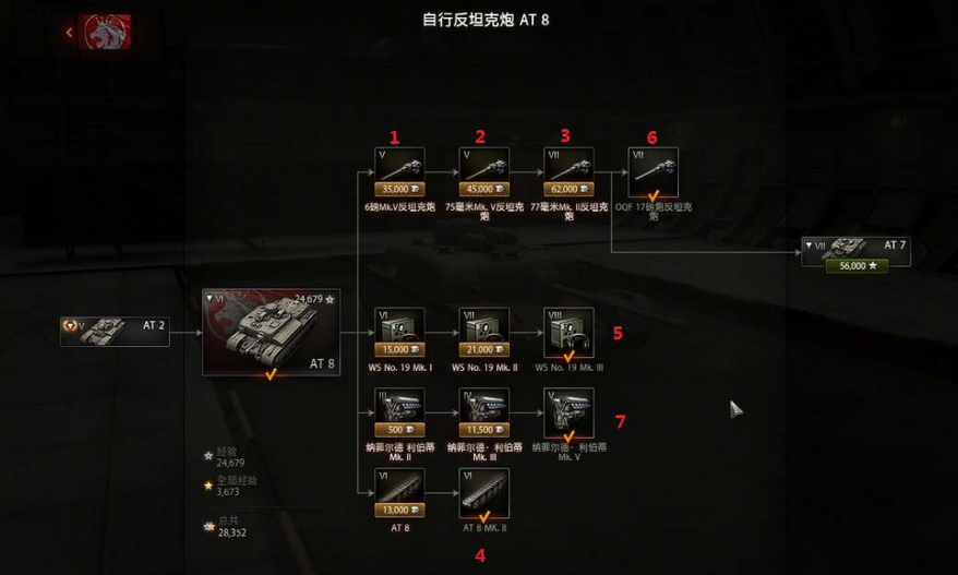 其实在我个人看来,英国2辆6级车,土狗二,和AT8,是一个套路:装备17磅速射炮,移动速度慢,但是输出能力惊人。唯一的区别就是土狗二靠血量而不是装甲取胜,AT8输出能力最好,但是没有炮塔。