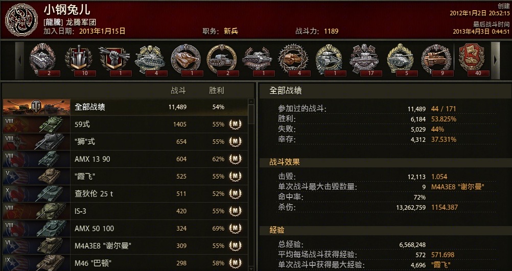 为了简单易懂细节,这里不给出公式权重细节,毕竟很多人看了公式还是不懂,干脆用我自己的数据来进行分析,完全版表格请百度“坦克世界战斗力计算公式”