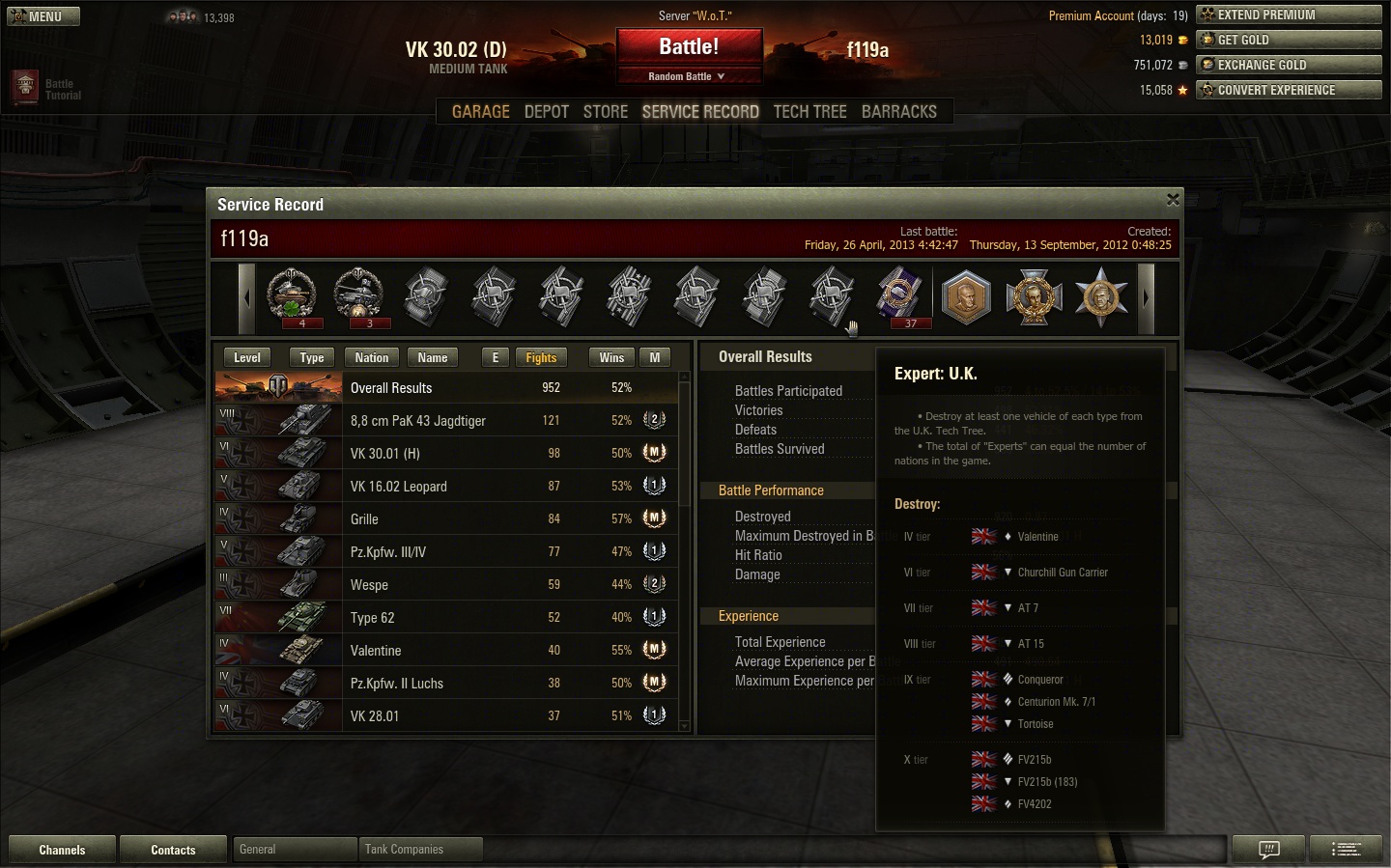 但总体进度来看依然快于百夫长7点亮FV4202(完全体需要19万经验,FV4202本身需要18万),远远快于从34-2爬上来的WZ120(如不点亮122炮则WZ120和百夫长7类似)。