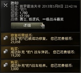昨晚打的几场战斗中,豹1在有V的情况下都是赚钱的,而且不是小赚。