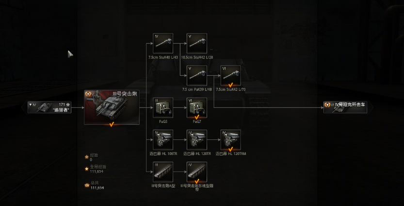 前面说过这辆车的特点,所以升级路线也是按照隐蔽,火控,机动来进行的!建议先研发3800经验的PAK39/48炮,然后再点亮顶级炮PAK42/70,因为这两门炮和白版炮重量相似所以不需要考虑负重问题(履带不用换)