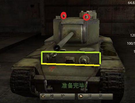 KV这个我做了标注,基本就是正面带机枪孔那块垂直的横板!还有炮盾两侧和头上大包,特别注意别打头上两个标注红色小揪揪,能穿但是大概率不掉血!