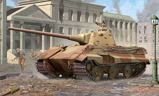 E-50标准战斗坦克——E-50和E-75是德国人设计的两种标准战车,E-50重50-60吨,计划取代“黑豹”和“虎”式。它和E-75的外形几乎一样(注意只是车体,量产型E-75的炮塔外形类似于虎王坦克)。E-50和E-75的悬挂系统,装甲厚度和重量不同。E-50的综合防弹能力比黑豹F提高了50%左右,它采用和“黑豹-2”型一样的长身管88毫米L/71火炮。