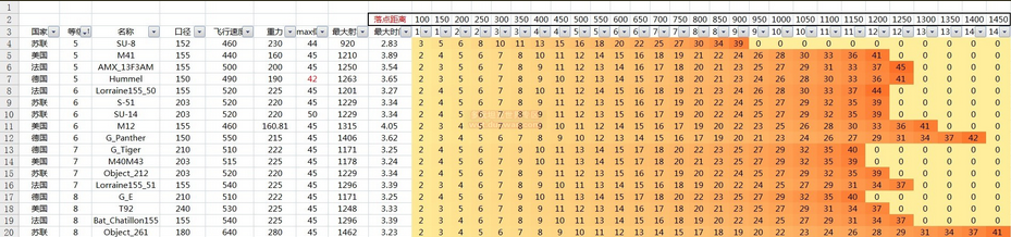 要减小入射角?很简单,拉近你与火炮的距离就行。借用坛子里某位高手做的火炮入射角表(非常不好意思那个帖子我找不到了,请帮忙提醒下我待会把ID补上)可知