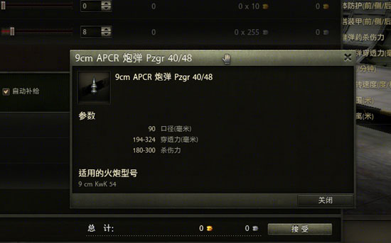 在大部分战车上属于金币炮弹(仅十级中坦例外),这类炮弹的穿深远高于AP(穿甲弹),以击穿敌坦克装甲后造成毁伤。使用APCR未能对坦克造成毁伤时有两种情况:1、敌坦克装甲太厚未能击穿或发生跳弹。2、仅命中对方坦克履带、炮管等外置车辆部件。