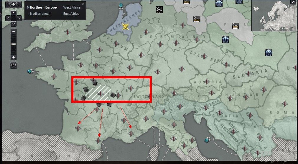我们当初空降的目标是法国、瑞士周边必入手,结果空降好像能选择5个地点,还真是忘记了,因为咱不管筹码的事,但坑爹网损了,大半夜的突然弹出集结地就开始打了,当时我还在睡觉呢(我操,真是坑 kdw用的毛子时间肯定的)。结果几个通宵的哥们看到了抢到了2块地,一块是Berry另外的一块是正方形的区域的一块。
