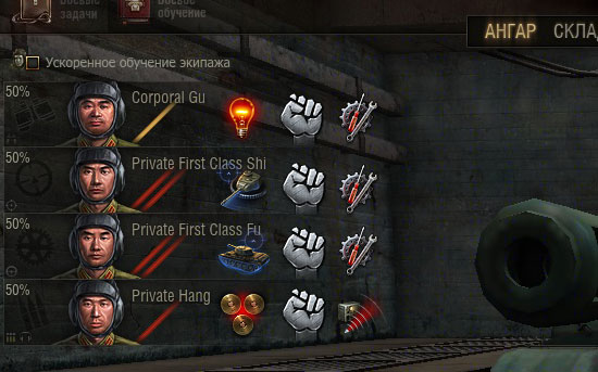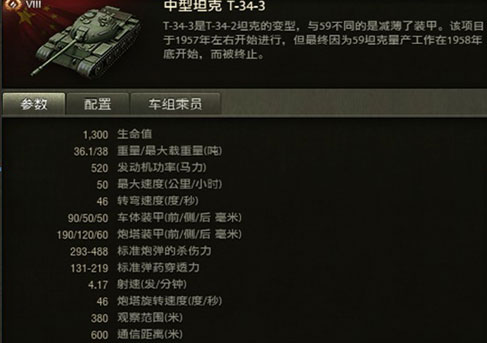 2、乘员技能有所不同:一般的坦克乘员拥有完整三技能就已经算是“身经百战”,T-34-3的三技能尤其重要。由于它属于支援型战车,所以不能完全照搬其他中坦的乘员技能。
