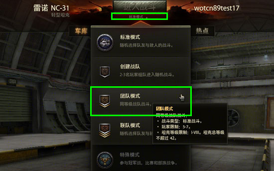 7V7模式是WCG中经典的42分制大赛,每队7辆战车且级别总和不超过42级。在这个模式中,玩家可以根据个人爱好建立属于自己的队伍,也可以用当前手中任意的1-8级战车进入其他玩家建立的队伍。该模式最大的特点是:配合度高、作战节奏快。