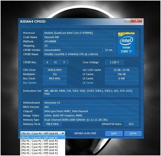 在硬件配置方面,本次拿到的这款ALIENWARE 14 配备了 22nm 制程工艺的英特尔酷睿 i7 4700MQ四核处理器,配置了西部数据 750GB 硬盘以及 64GB 固态硬盘(该SSD用作硬盘加速未被识别),以及两条 8GB DDR3 1600MHz 高速内存 16GB 容量,显卡方面该机型采用了处理器自带的英特尔 HD 4600 核芯显卡。