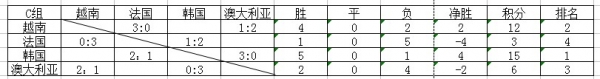 德国队发挥稳定,取得两场胜利领跑小组积分榜。中国队由于进攻太过心急在对德国的比赛中遗憾告负,不过可以看出中国队在整体水平上与德国队相差不大。由于小组积分的关系,中国队现在暂列第三,排在德国和日本之后。