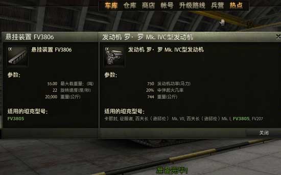 FV3805自行火炮白板履带不能直接安装顶级炮,先安装二级增强水平螺旋弹簧以提高载重,然后用6英寸榴弹炮打出7.2英寸榴弹炮的经验,再研发履带,最后把弹簧去掉安装通风。FV3805使用的是Y系8级火炮的发动机和电台,无需研发。
