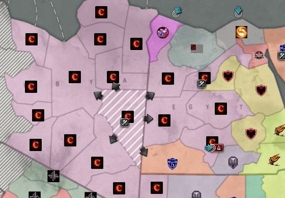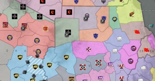 阿拉伯西北角重回特战五控制 GA17上周在以色列附近的登陆仅仅两天就被特战五反扑回去。特战继续控制该高产区域,作为稳定整个军团收益的后方。 CV 特五僵持不动。 在Maysan登陆的CV各军团连续数日于特战五争斗,最终将战线僵持在FAYD一带,并将自己几个支援军团从Ma